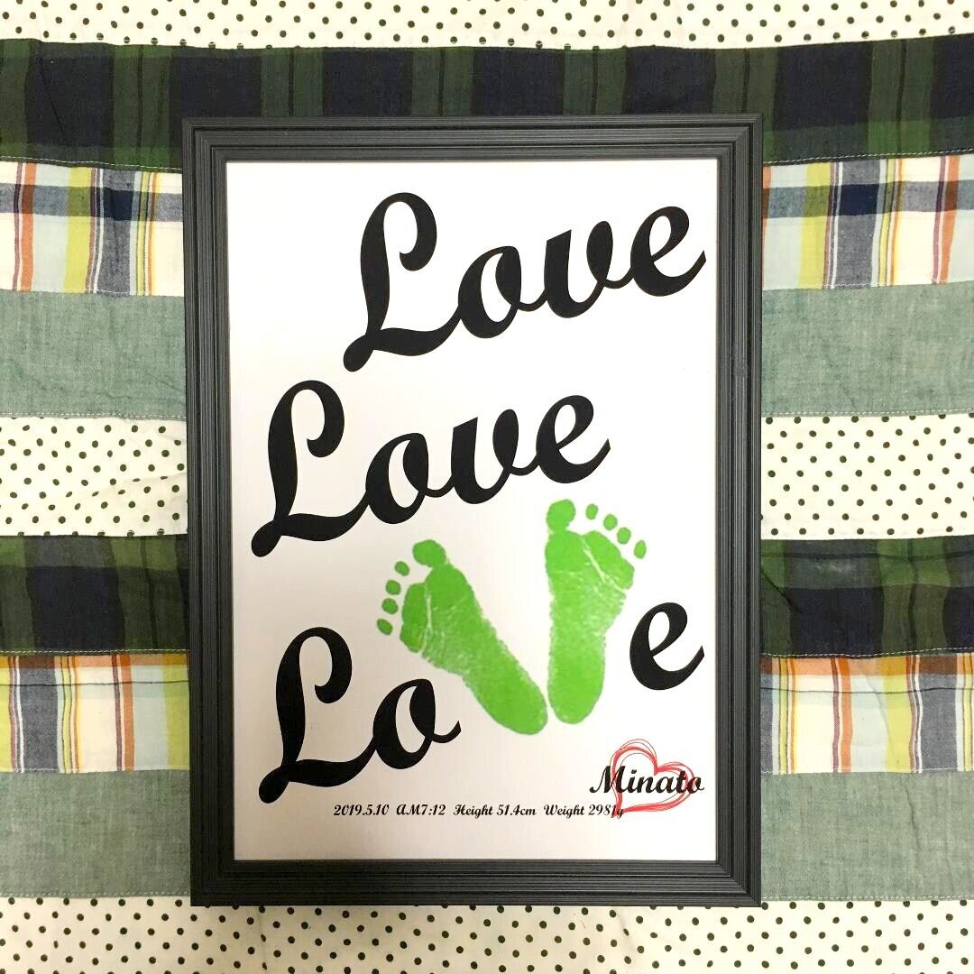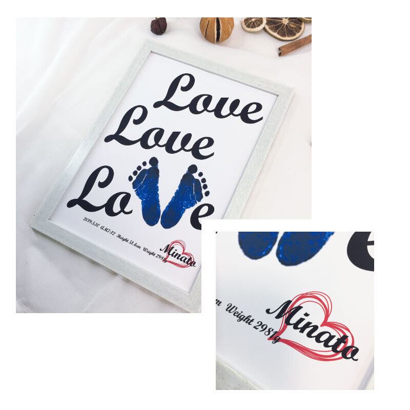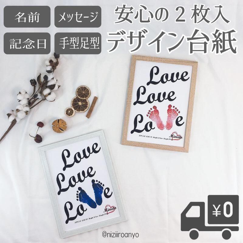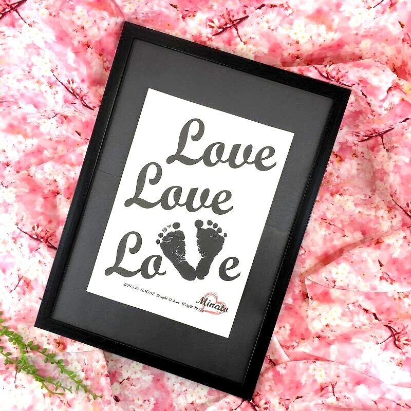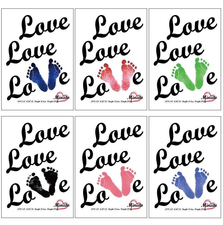 LoveLoveLove デザイン 台紙 ■ 手型 足型 【名入れ】 説明書付き インク スタンプ も選べる ◆ 記念 誕生 手形 足形 アート ポスター 出産 赤ちゃん ベビー