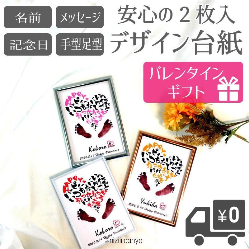 バレンタインハート(縦) デザイン 台紙 ■ 手型 足型 【名入れ】 説明書付き インク スタンプ も選べる ◆ 記念 誕生 手形 足形 出産 赤ちゃん ベビー