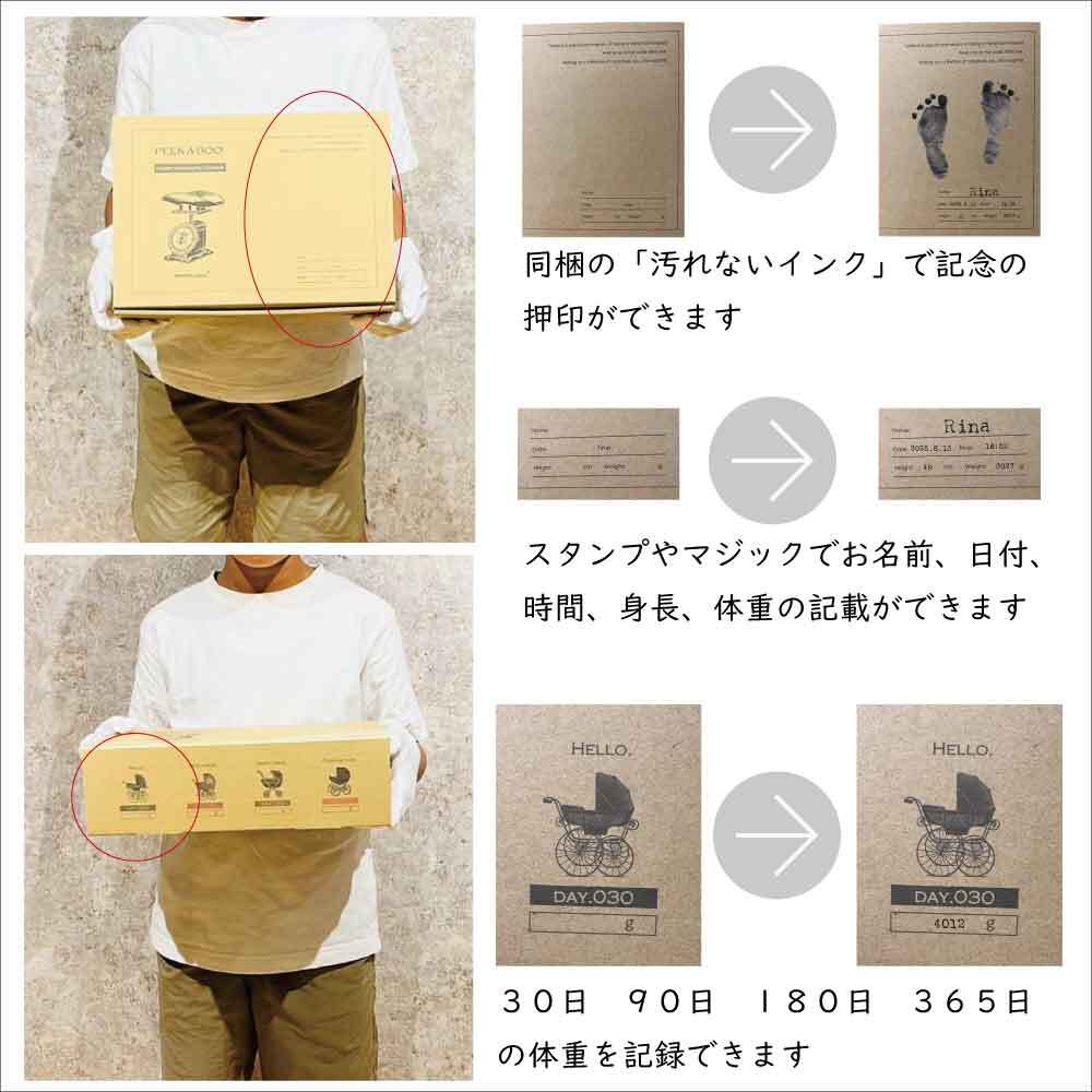 BOX側面は体重の記録も可能。忙しい育児の合間でも、手軽にお子様の成長の瞬間を逃さず記録することができます。